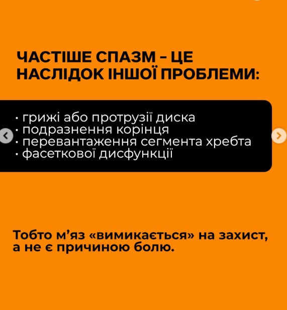 Висновок: спазм може боліти дуже сильно, але не завжди “защемляє”. Якщо з’являються неврологічні симптоми – потрібен огляд невролога.